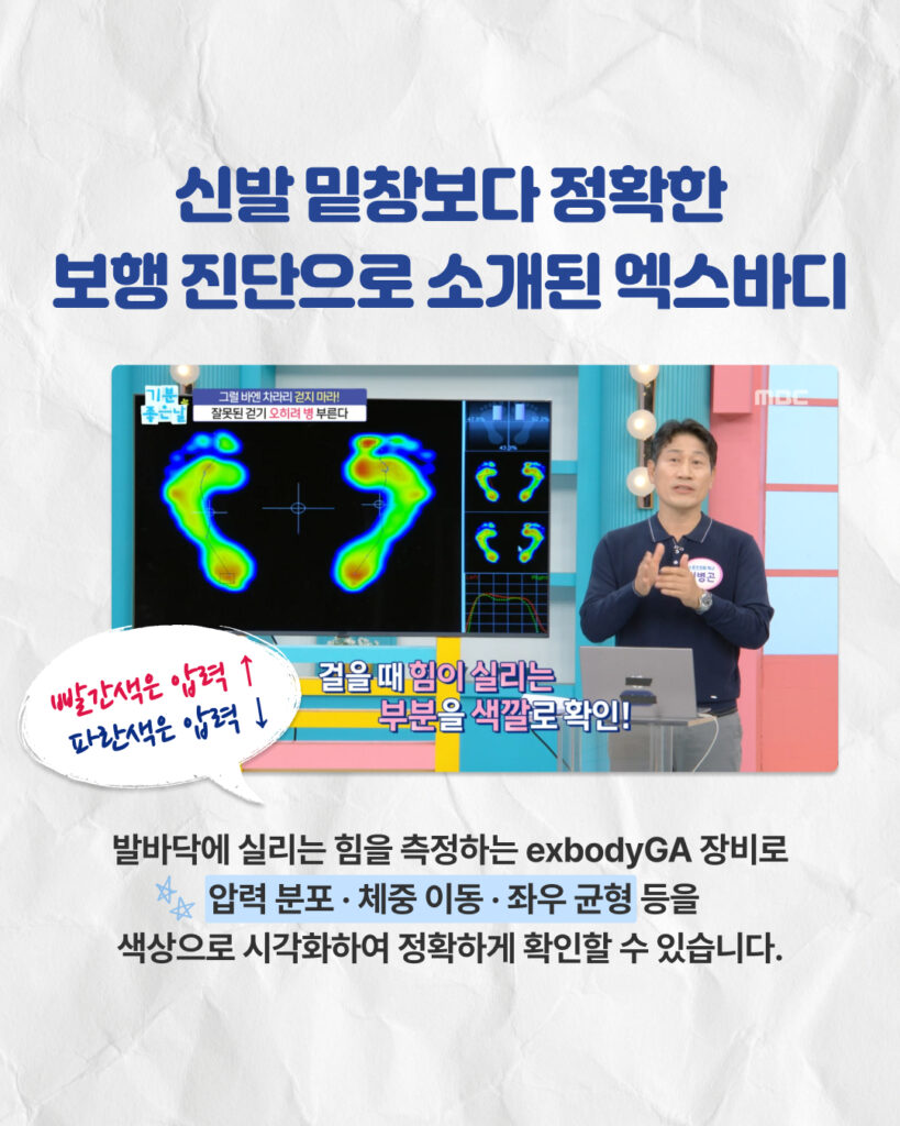 이에 방송에서는 엑스바디 GA의 족저압 분석 기술을 활용하여